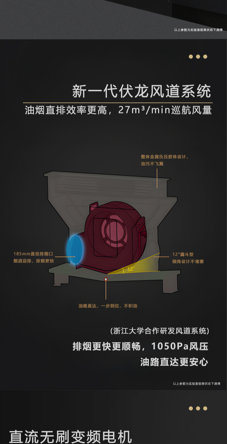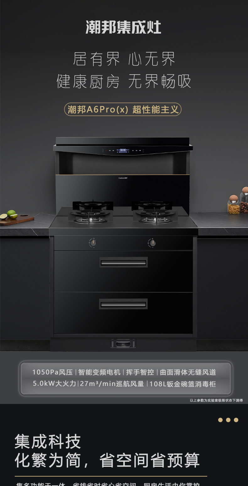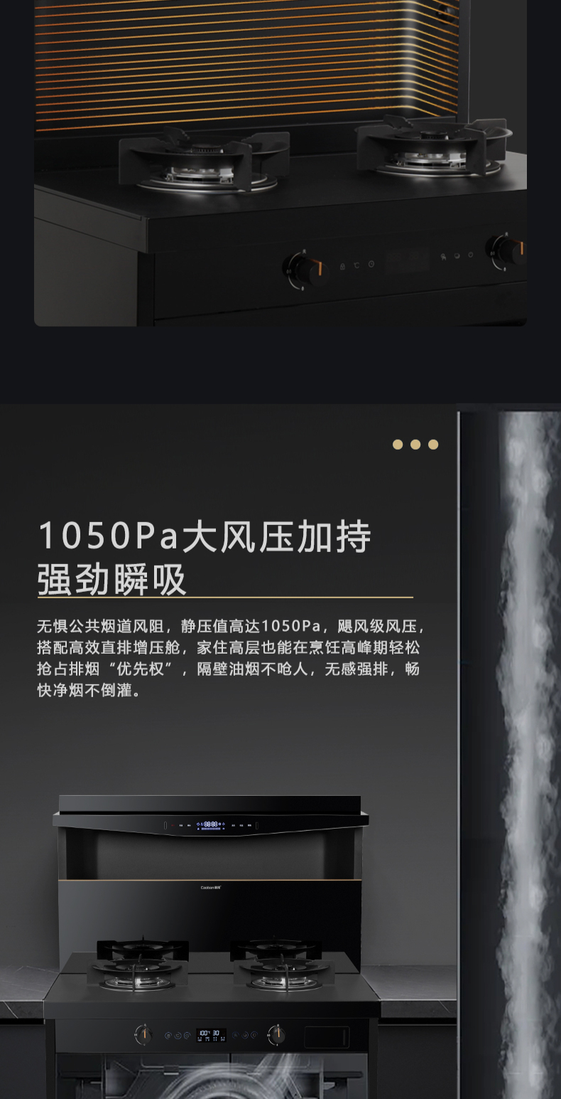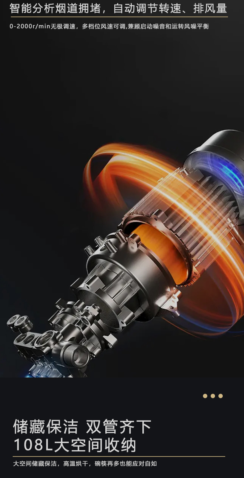 1050Pa風(fēng)壓|智能變頻電機(jī)|揮手智控|曲面滑體無縫風(fēng)道 5 0kW大火力|27m3 min巡航風(fēng)量|108L鈑金碗籃消毒柜