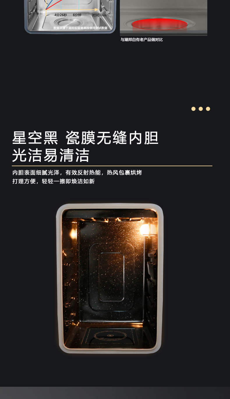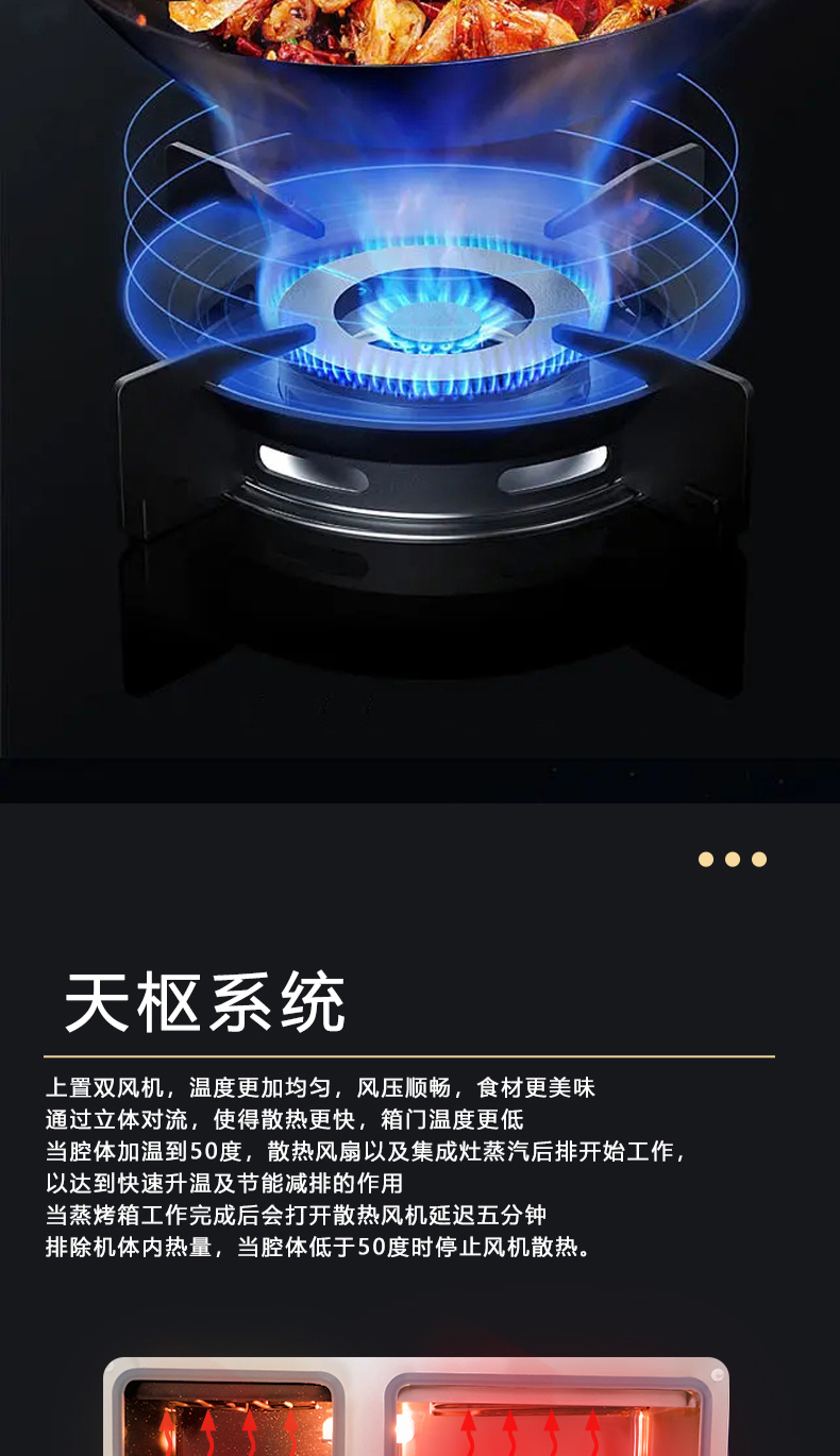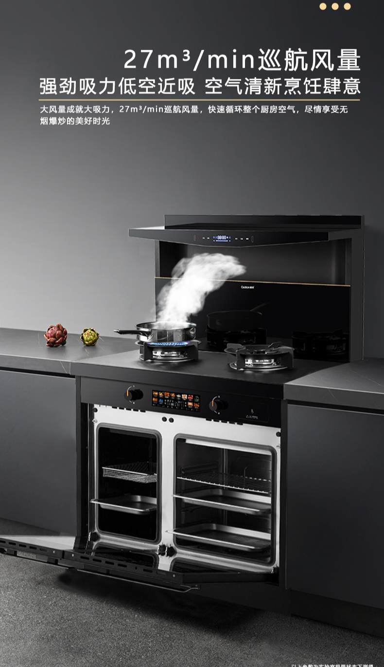 蒸烤同步|1050Pa風壓|智能變頻電機|揮手智控|曲面滑體無縫風道|無縫瓷膜內(nèi)膽|一鍵熱融清洗|5 0kW大火力| 27m3 min巡航風量| 智能預約功能
