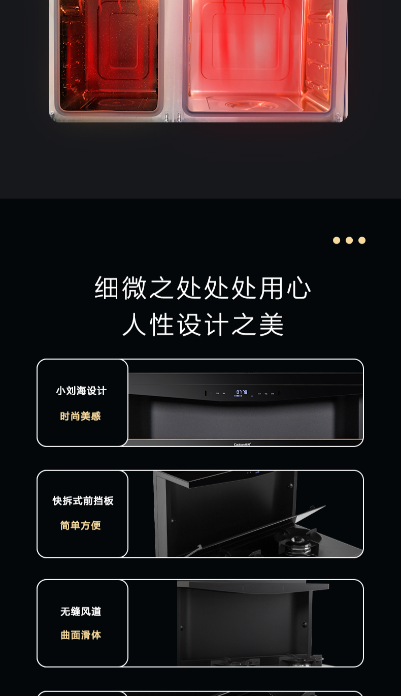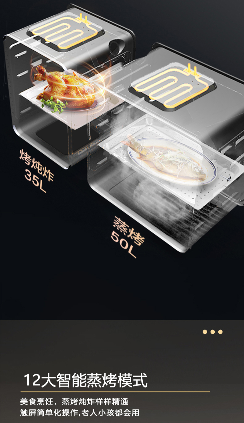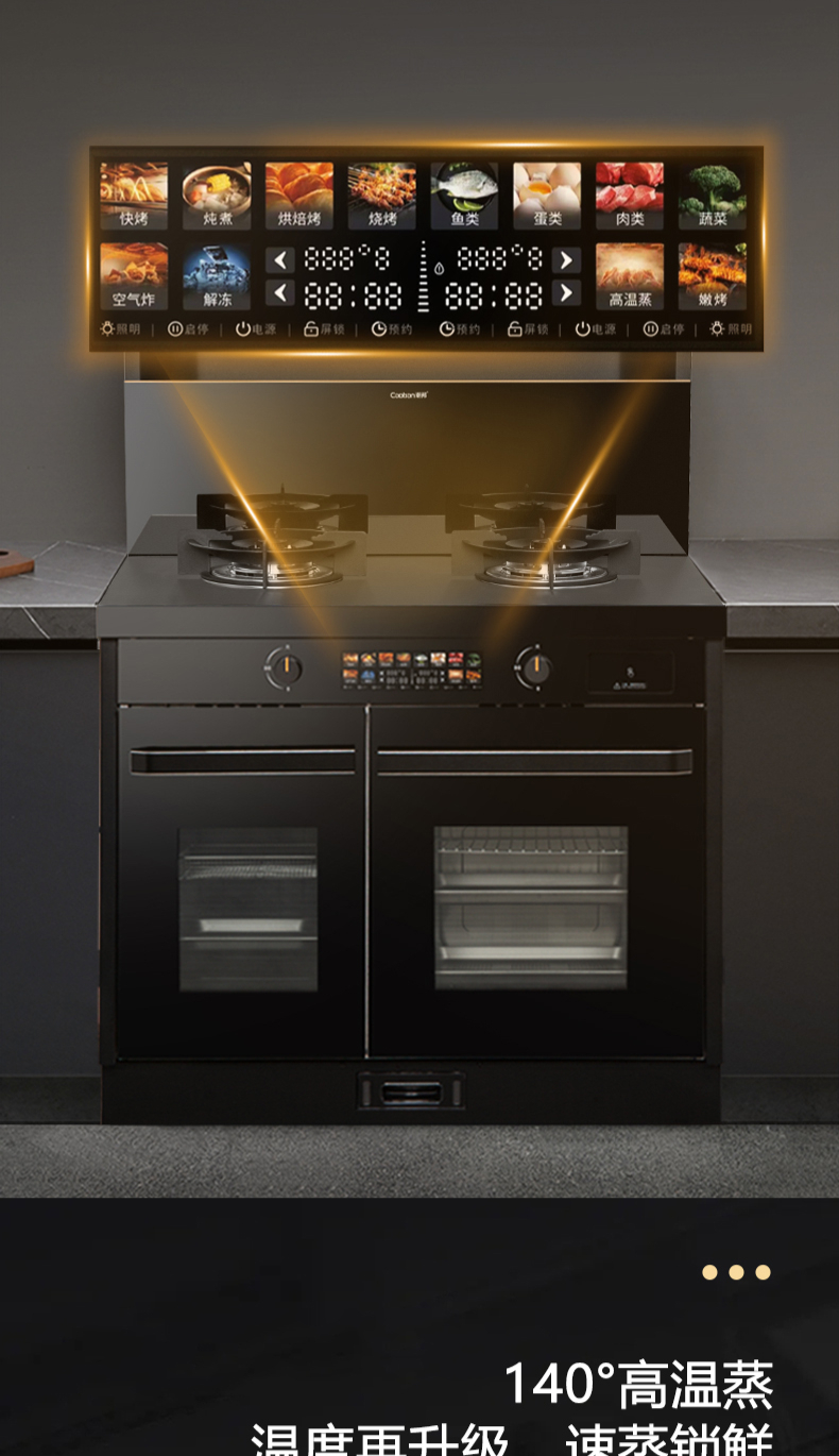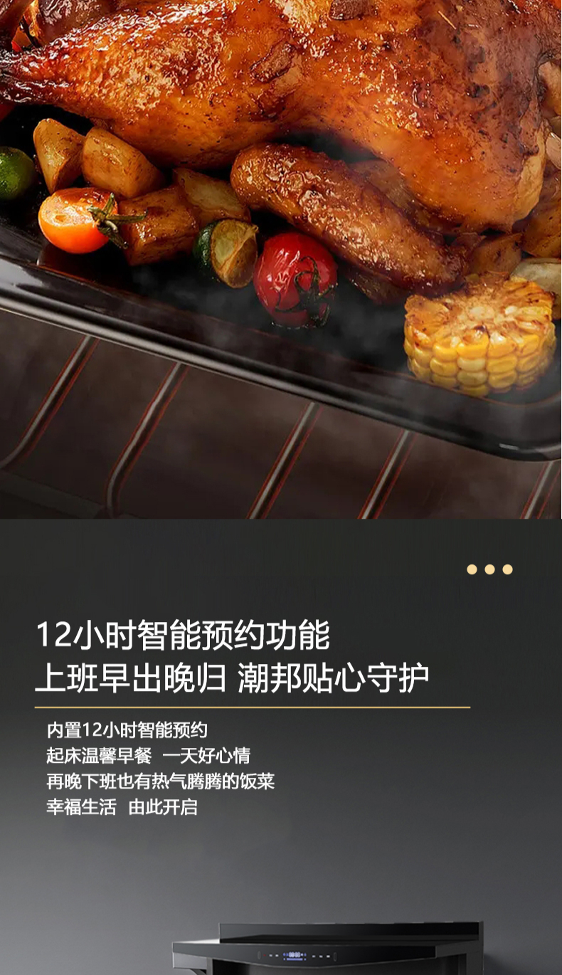 蒸烤同步|1050Pa風壓|智能變頻電機|揮手智控|曲面滑體無縫風道|無縫瓷膜內(nèi)膽|一鍵熱融清洗|5 0kW大火力| 27m3 min巡航風量| 智能預約功能