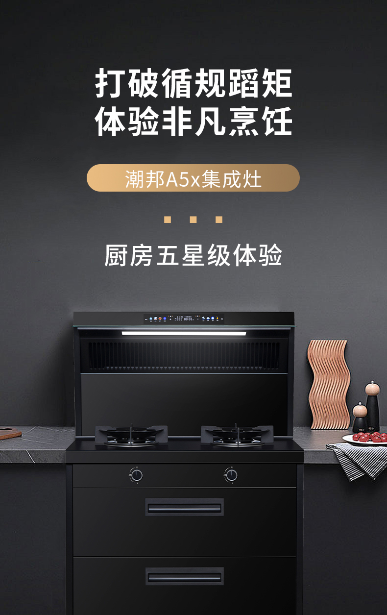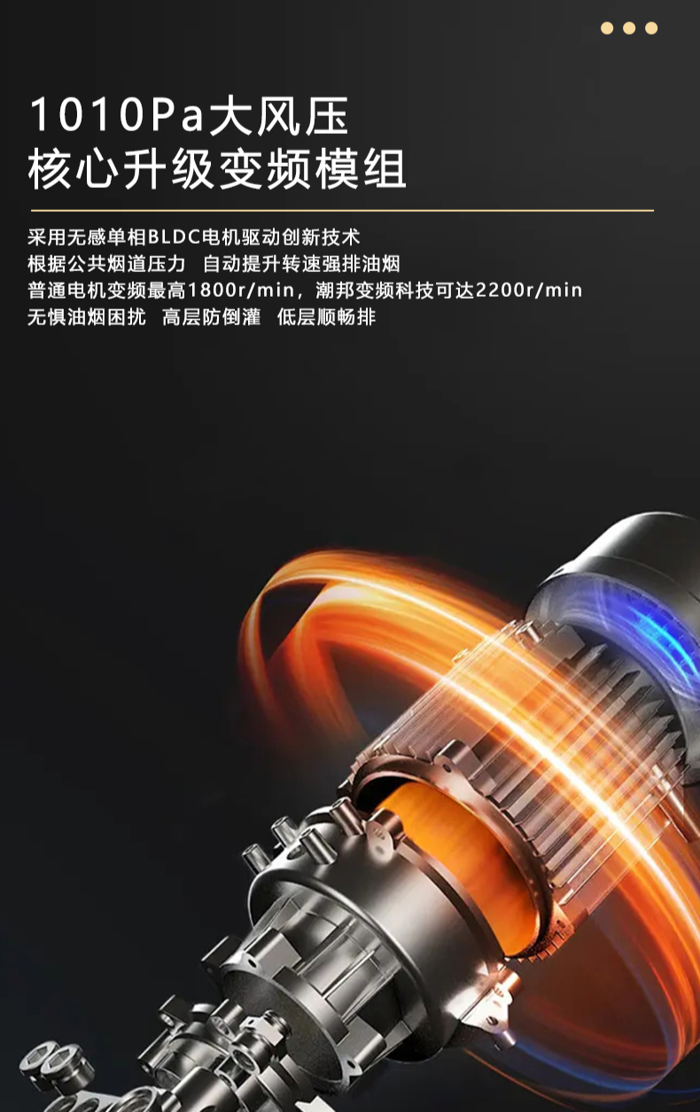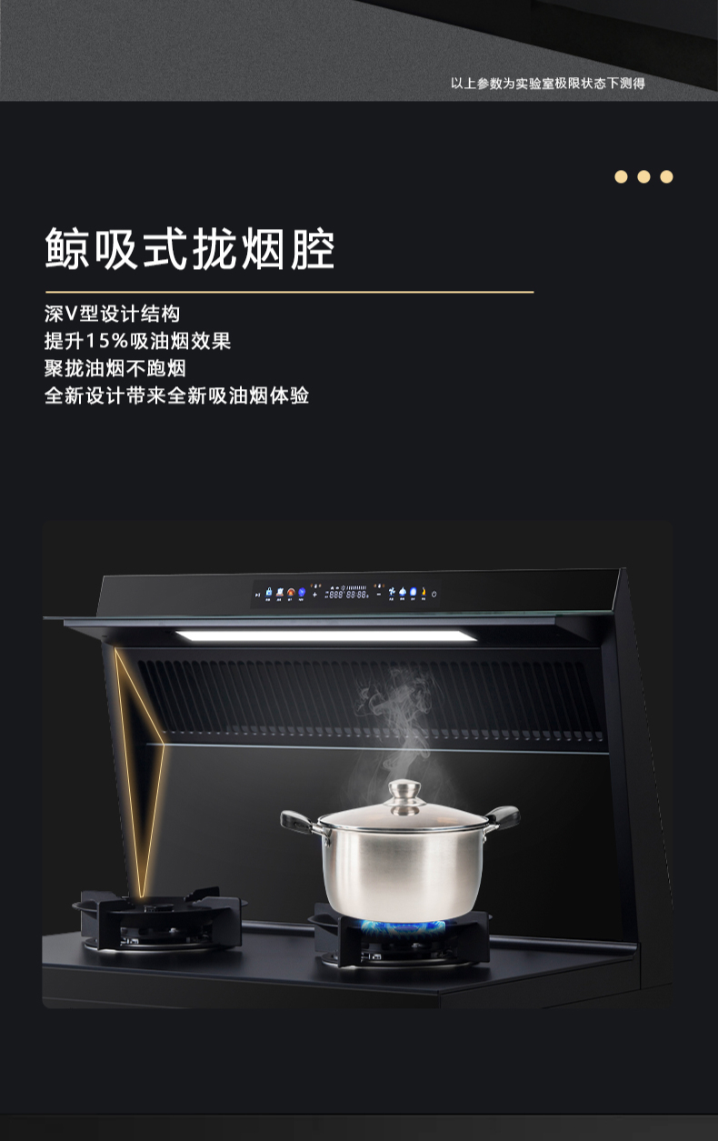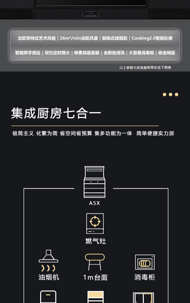 廚房七合一,26方超大巡航風(fēng)量,雙核驅(qū)動(dòng)變頻控制,5kW大火力,揮手智控,電熱自清潔