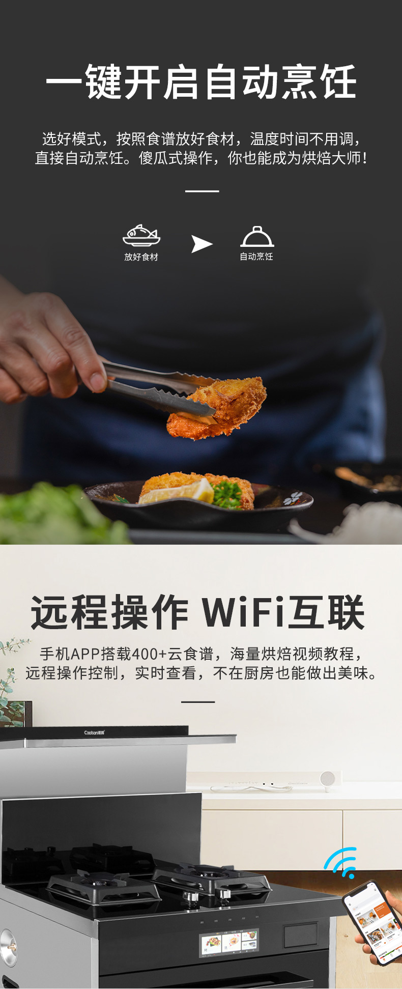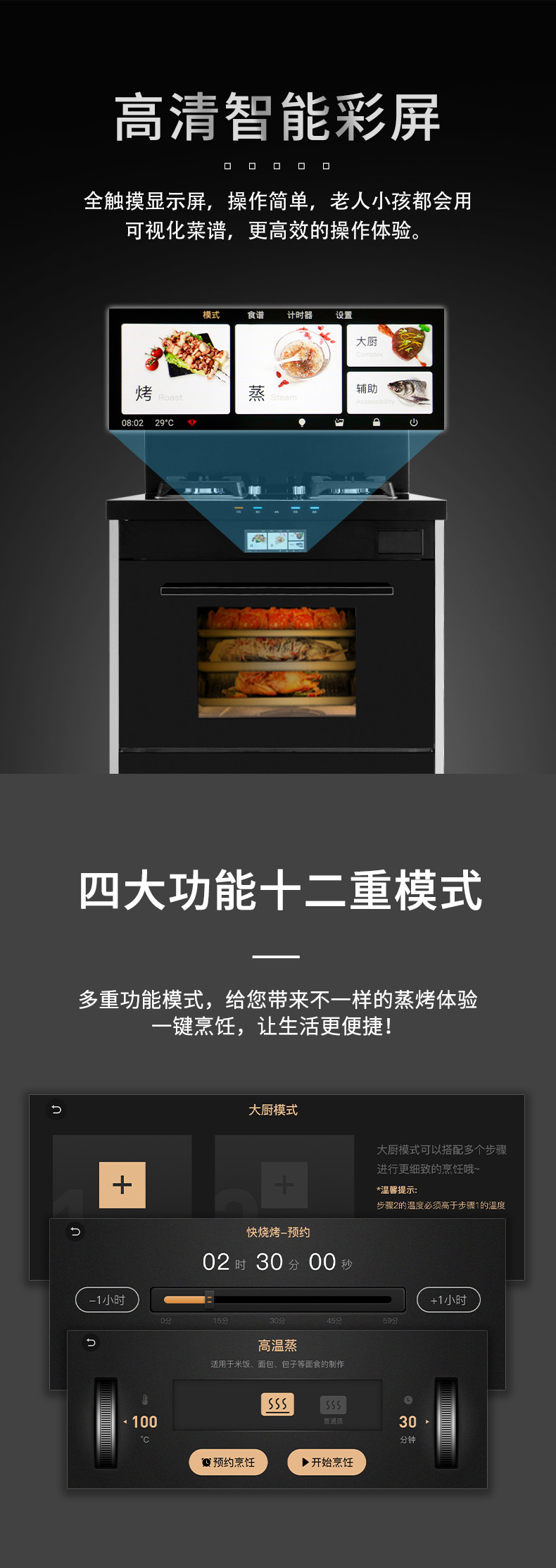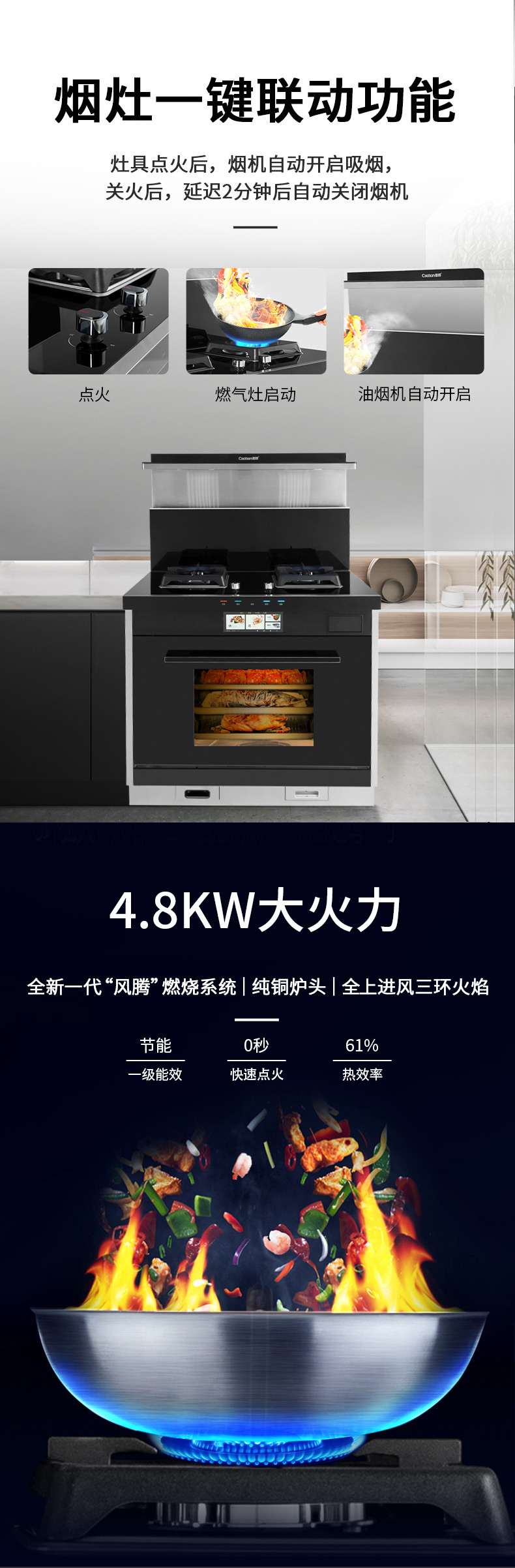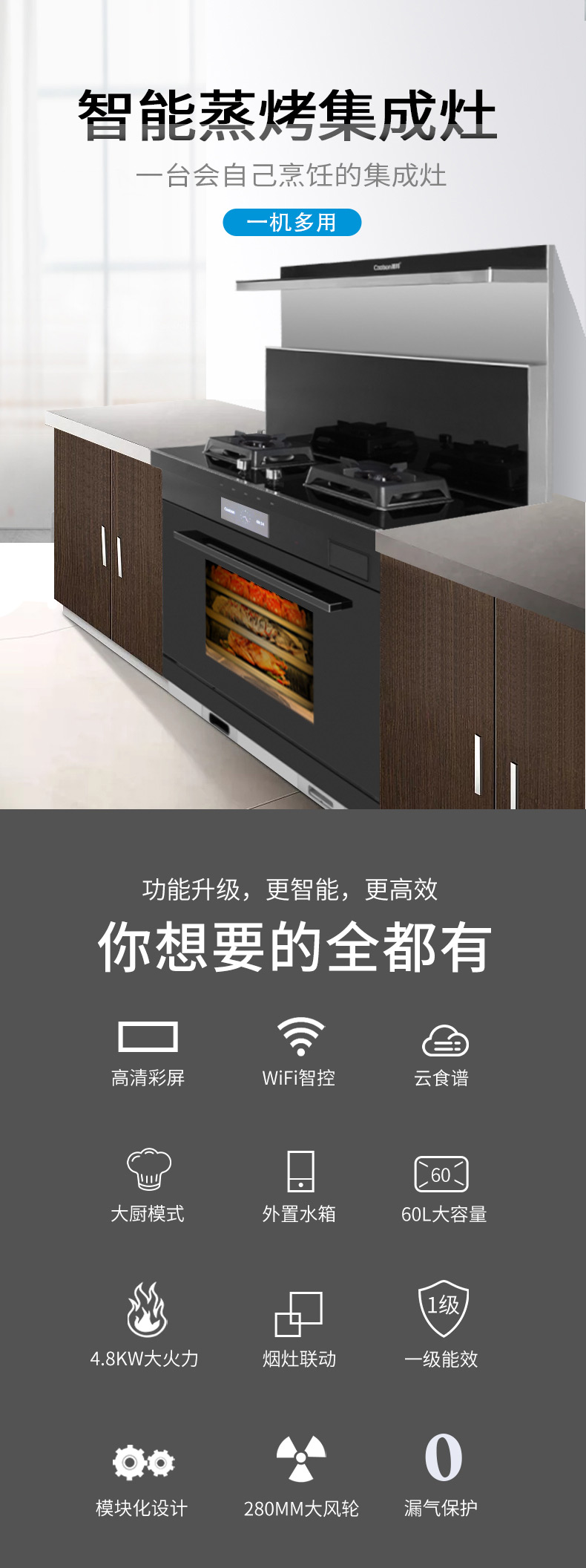 智能蒸烤消一體集成灶,一臺頂五臺。