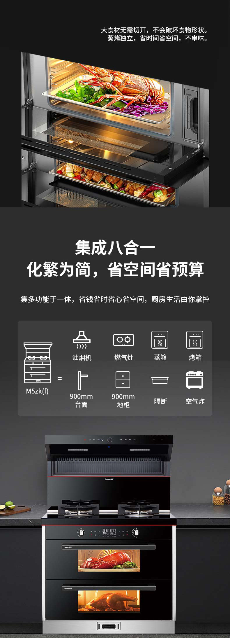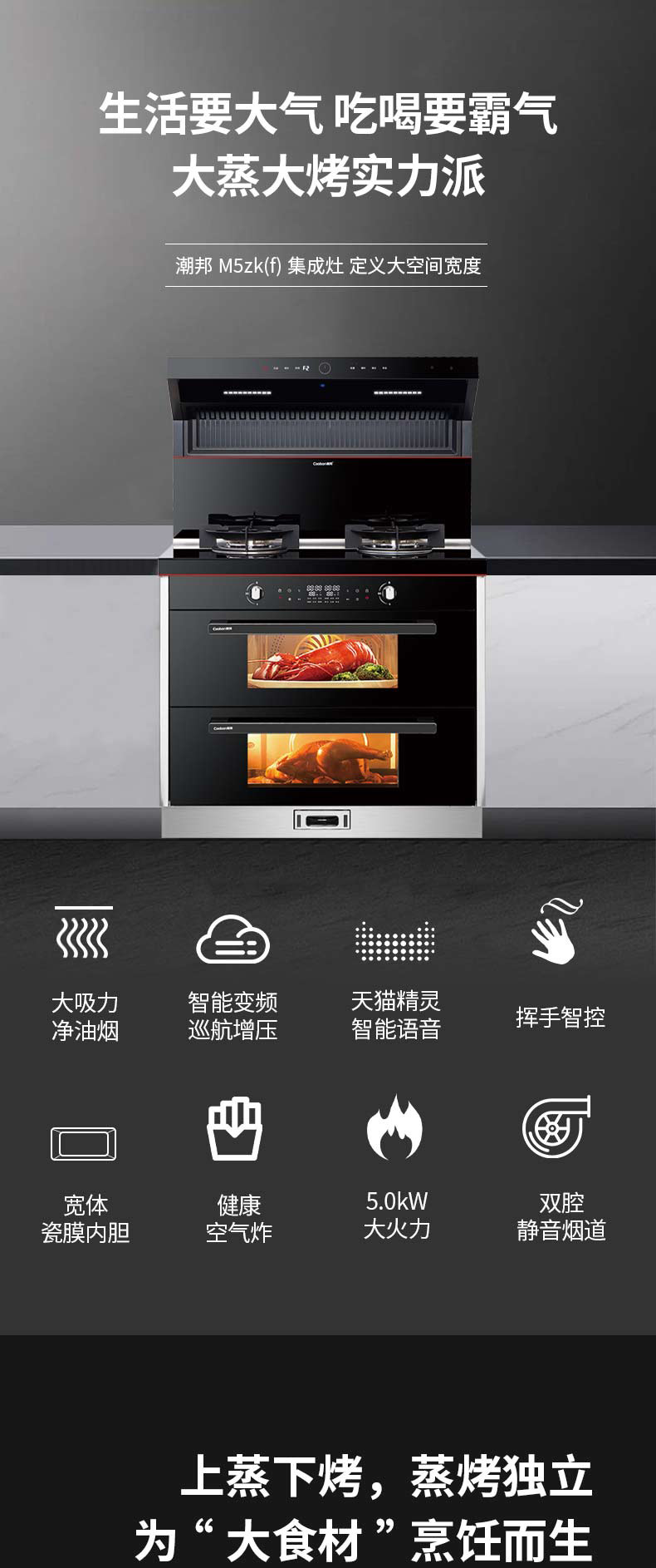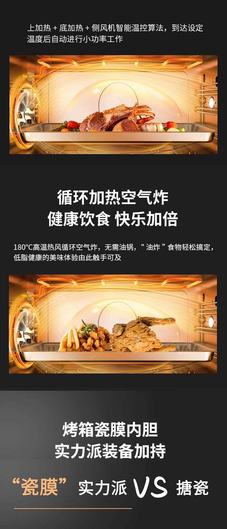 上蒸下烤,蒸烤獨(dú)立。智能控制,寬體瓷膜內(nèi)膽。